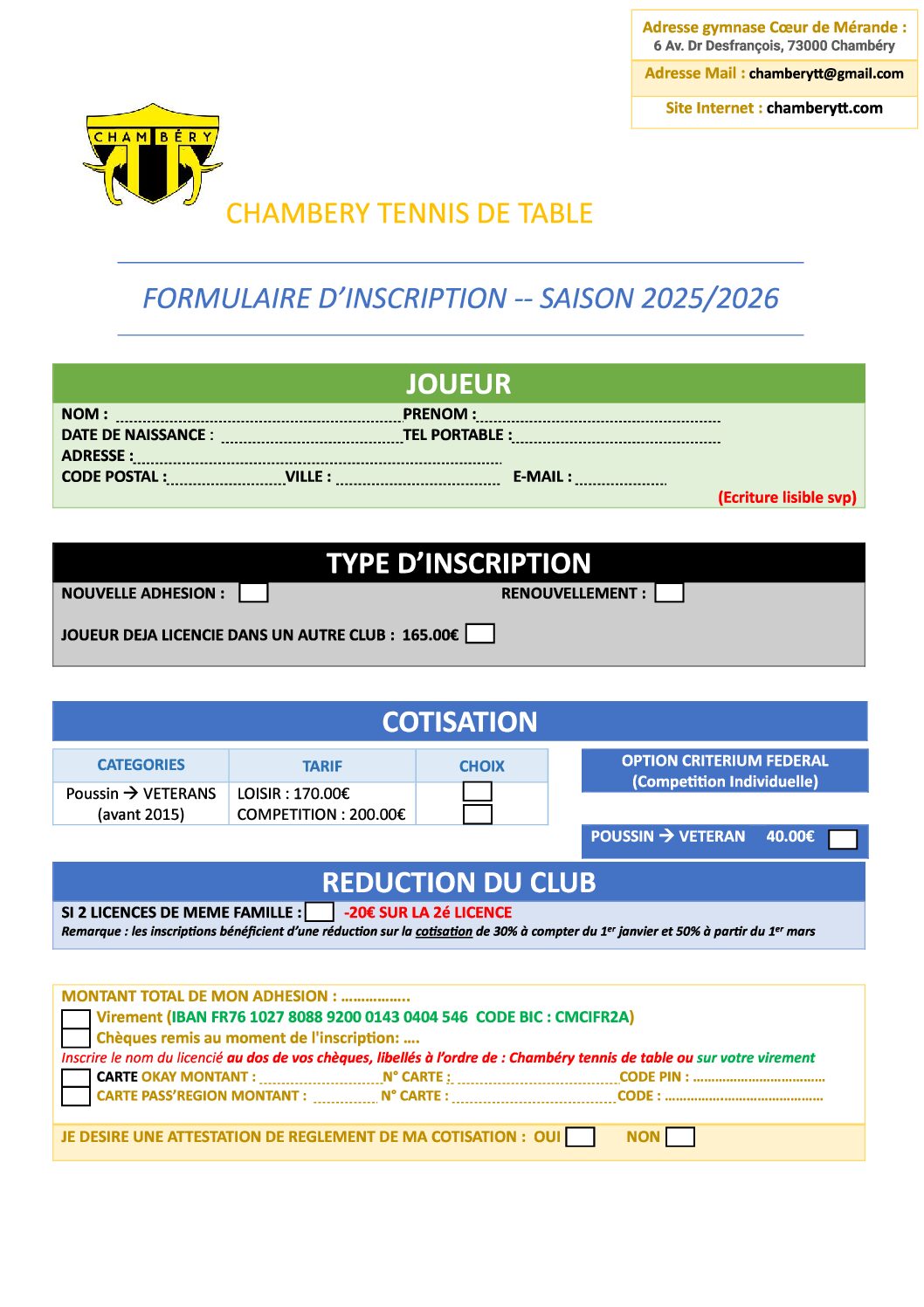 FICHE D'INSCRIPTION